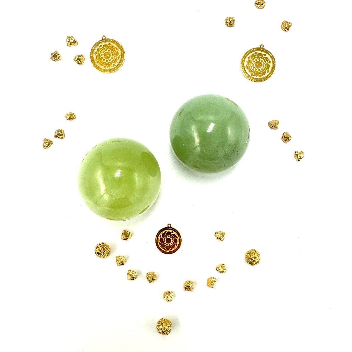 Amulet with a unique nephritic ball in a sensual green color, presenting collector's value due to its uniqueness.