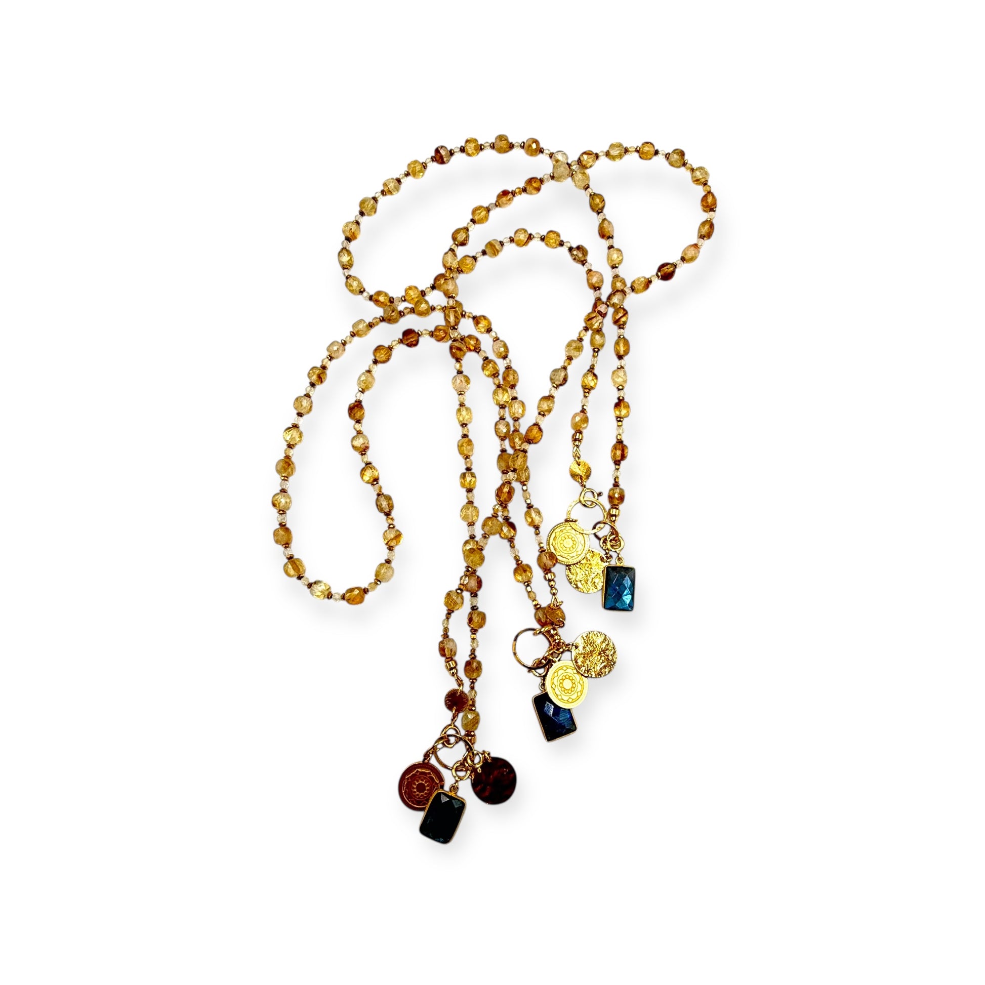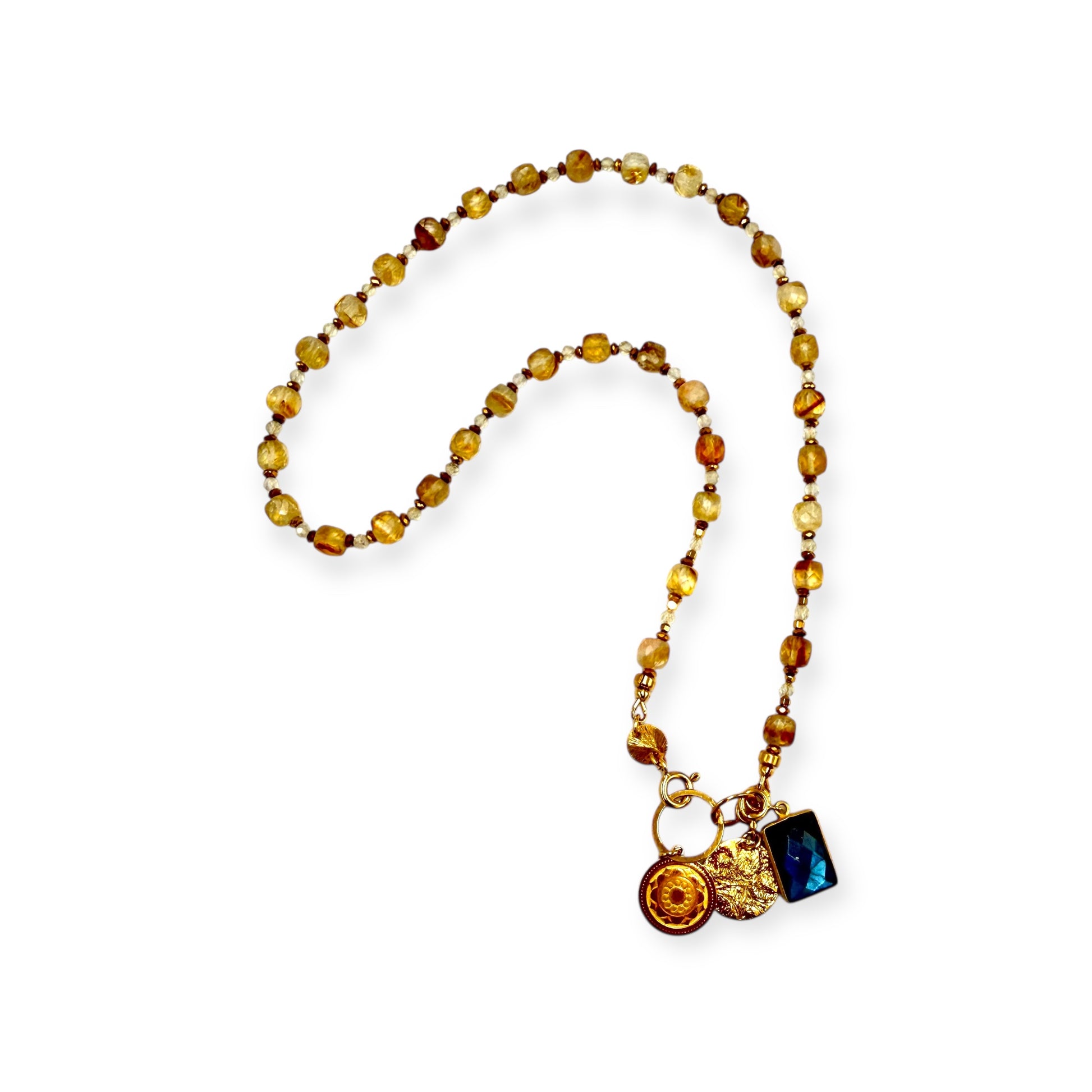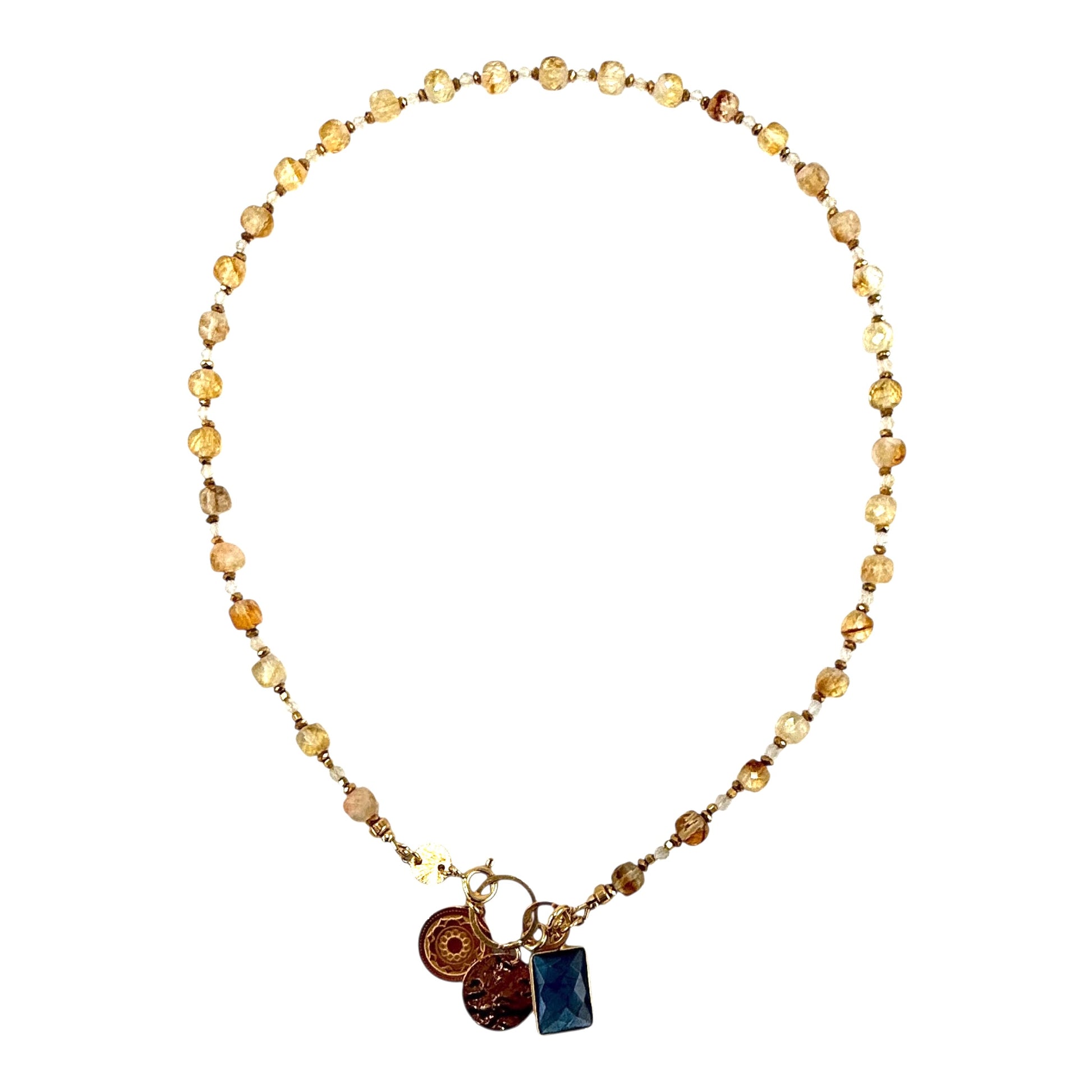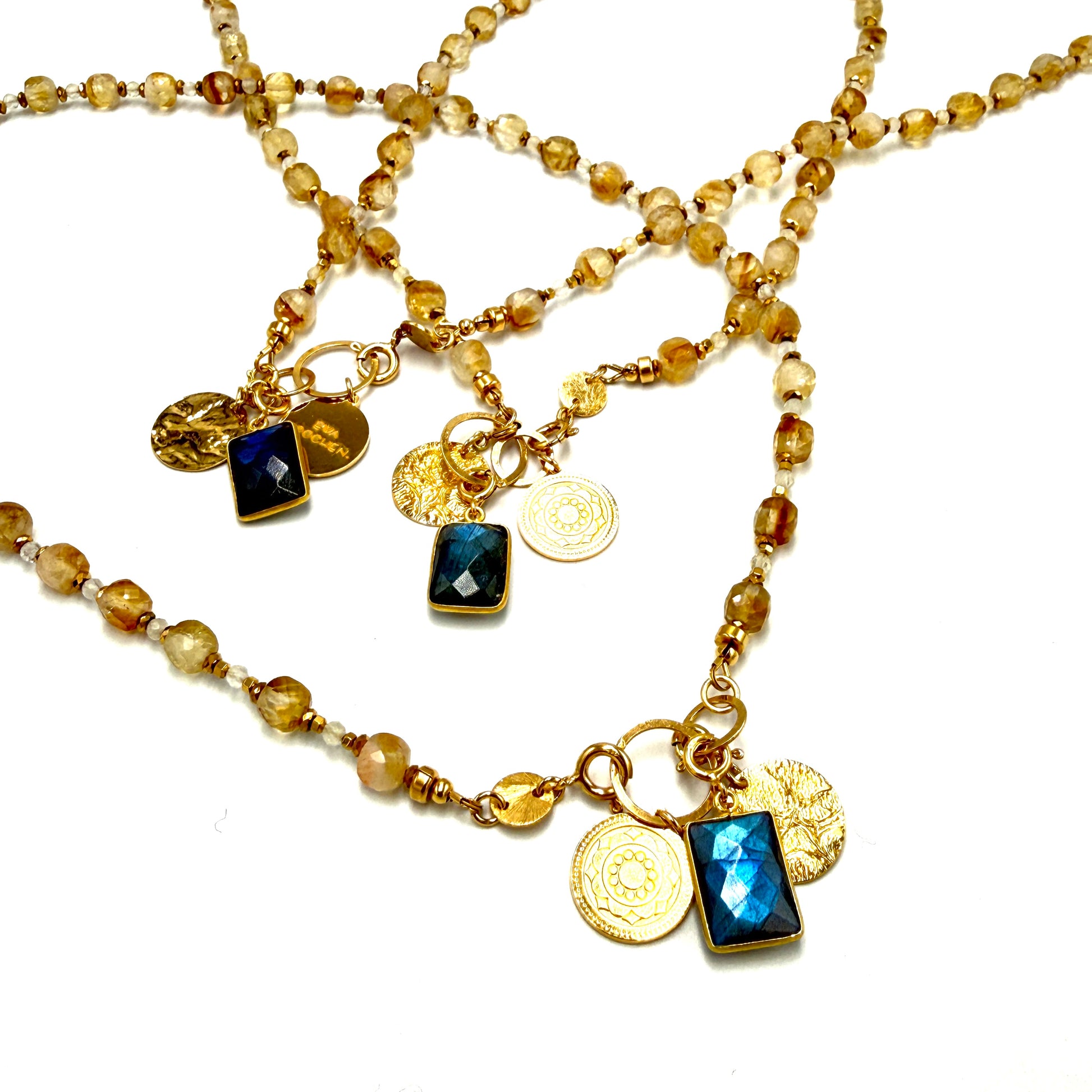 Naszyjnik ręcznie wykonany ze słonecznych Cytrynów BOGINI BOGACTWA, z akcentem satynowanego srebra i autorską zawieszką i bajecznie magicznym Labradorytem.
