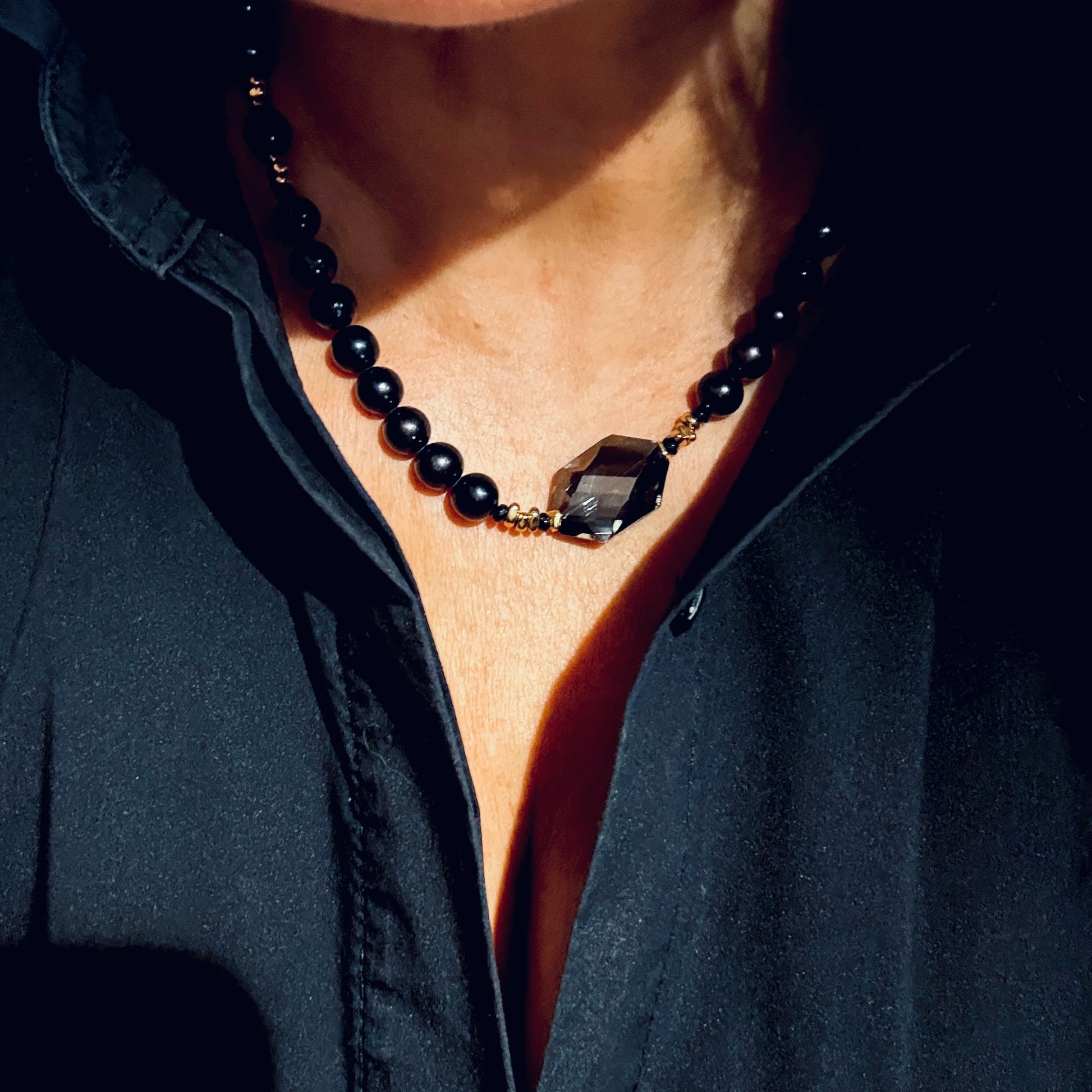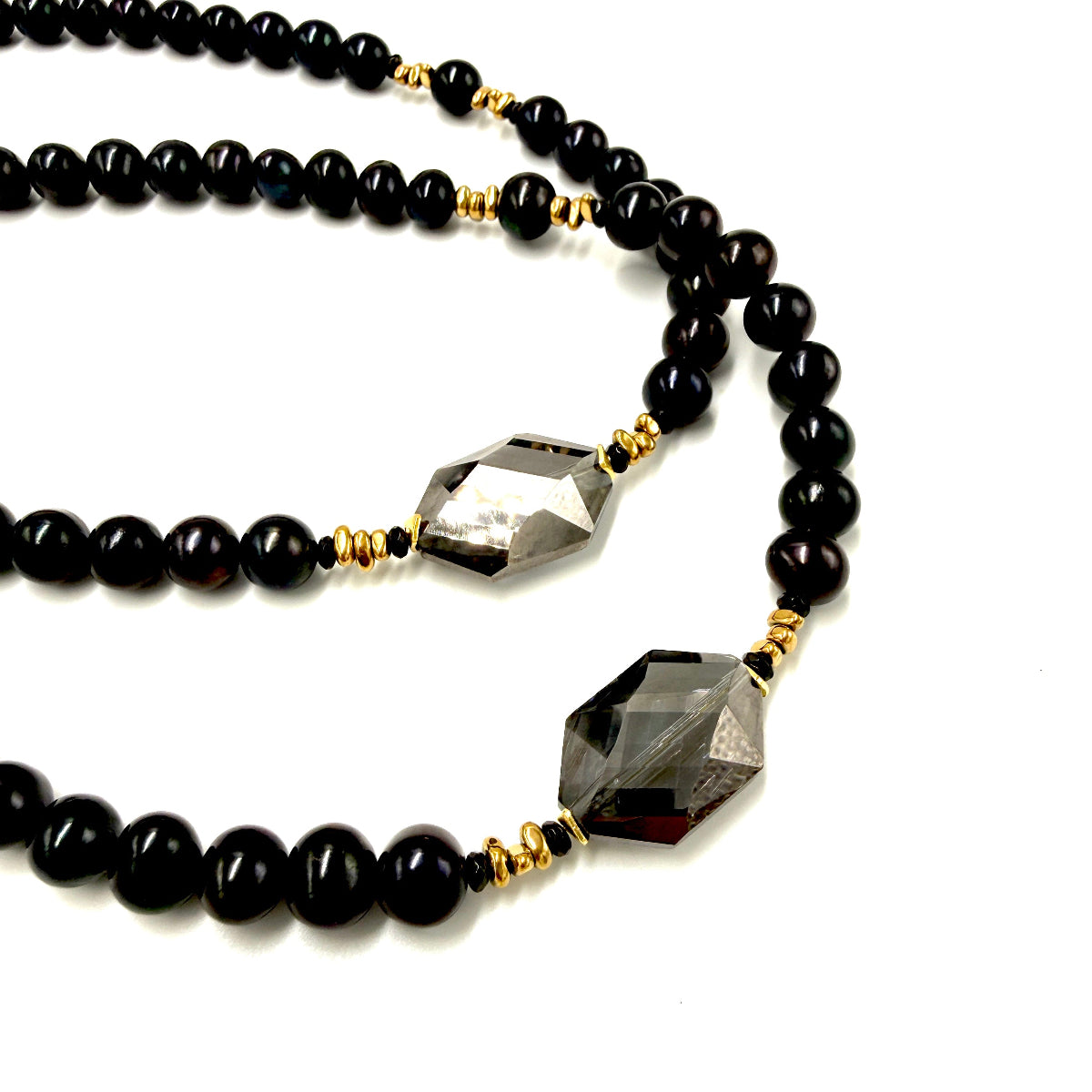 Naszyjnik Black Beauty, otula dekolt kobiety jak precyzja kryształu i elegancją pereł. Każda perła jest historią o dojrzewaniu, świadomości i elegancji bycia sobą. to biżuteria, która towarzyszy w momentach ważnych, intymnych, prawdziwych. Staje się talizmanem spełnienia.