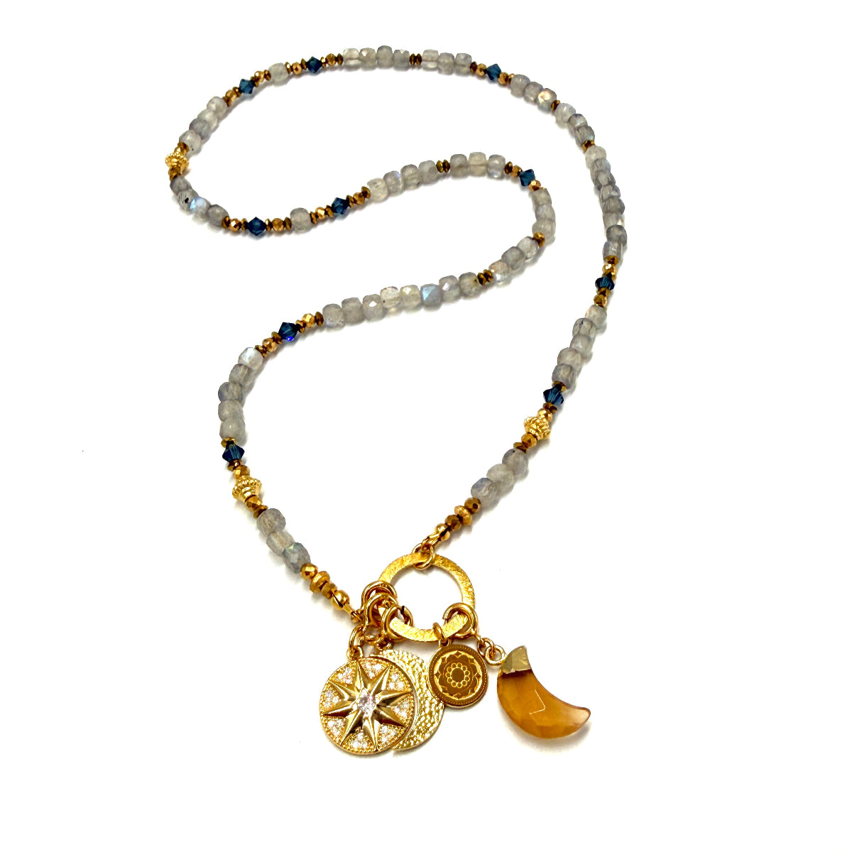 Naszyjnik Magiczne wrażenia, ręcznie wykonany z naturalnych fasetowanych - magicznie rozpraszających refleksy światła Labradorytów.